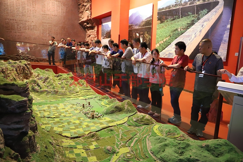 紅旗渠紀念館不僅是一座以研究、展示、傳承、收藏紅旗渠歷史的一座展館。也是我們學員感悟“自力更生、艱苦創(chuàng)業(yè)”的紅旗渠精神的一個重要窗口。學員們在展館前留念,并進行現場教學。