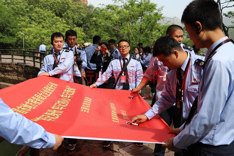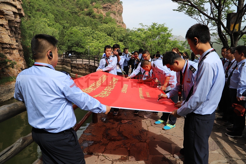 紅旗渠紀(jì)念館不僅是一座以研究、展示、傳承、收藏紅旗渠歷史的一座展館。也是我們學(xué)員感悟“自力更生、艱苦創(chuàng)業(yè)”的紅旗渠精神的一個(gè)重要窗口。學(xué)員們?cè)谡桂^前留念,并進(jìn)行現(xiàn)場教學(xué)