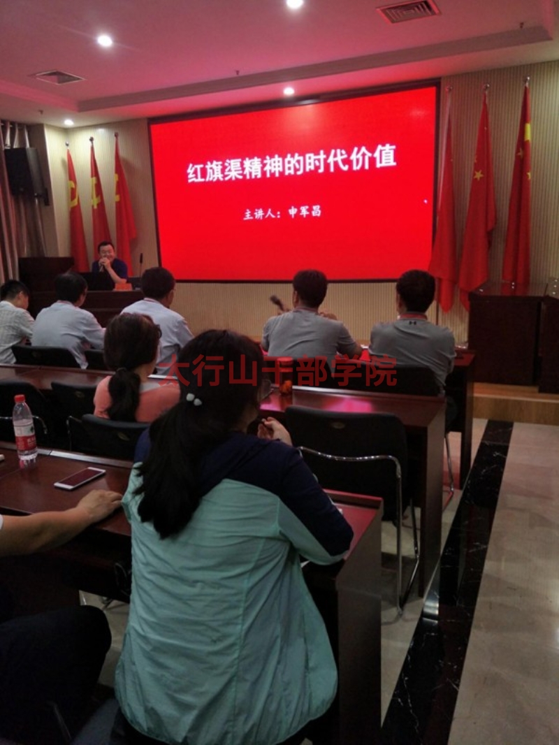 活動(dòng)中,學(xué)員們聆聽了林州市委黨校副校長(zhǎng)馬東興《紅旗渠精神及其時(shí)代價(jià)值》的專題講座,馬東興全面解讀了紅旗渠精神,系統(tǒng)闡釋紅旗渠帶給我們的“堅(jiān)定理想信念”、“堅(jiān)持同人民在一起”、“發(fā)揚(yáng)釘釘子精神”等當(dāng)代啟示。