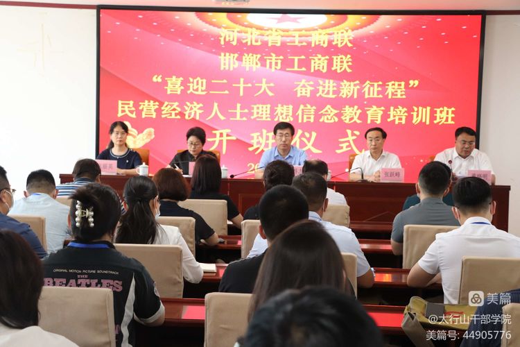 6月23日—25日,河北省工商聯(lián)、邯鄲市工商聯(lián)在我院舉辦了“喜迎二十大 奮進(jìn)新征程”民營經(jīng)濟(jì)人士理想信念教育培訓(xùn)班。23日下午,省工商聯(lián)黨組成員、副主席尚德志,市委常委、統(tǒng)戰(zhàn)部長張躍峰出席開班儀式并講話,市政協(xié)副主席、市工商聯(lián)主席曹淑霞主持開班儀式,涉縣縣委書記董路明致歡迎辭。