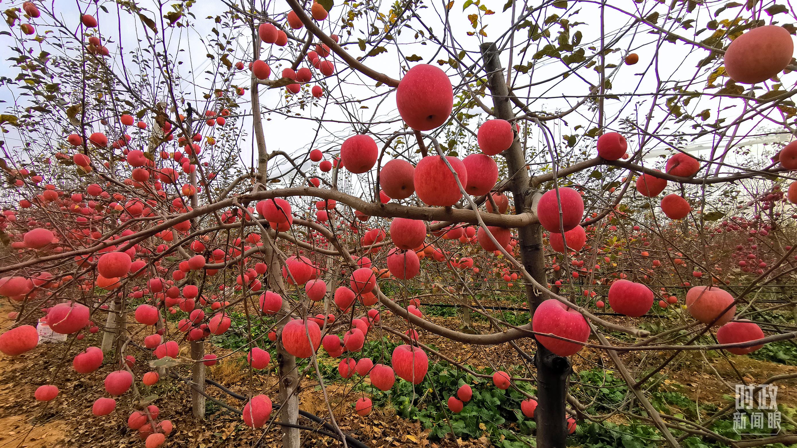 △綴滿枝頭的大紅蘋果,極具視覺沖擊力。